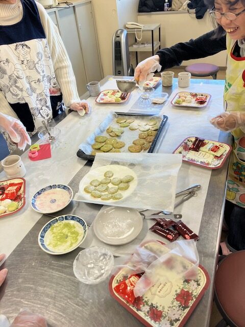 調理室内はクッキーを焼くとってもいい匂いに包まれ、久しぶりにご一緒での和やかな tea time。ZOOMでお話ししていても対面は初めてのSさん。2回目参加のNさんやMさん皆さんワクワクの時間でした。「来ることが出来てよかったね」「会えてうれしい!」「クッキー作るの初めて!」